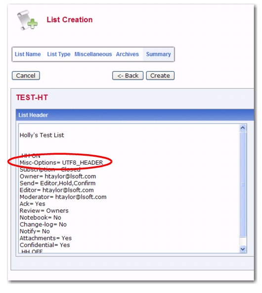 With the addition of unicode support in LISTSERV 16.0, all newly created lists will now include Misc-Options= UTF8_HEADER in the list header by default. This means that all newly created lists will have a UTF-8 compatible header.