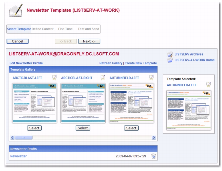 To access the Newsletter Template wizard, go to the List Archives screen, the Archives Index screen, or the Archive Browsing screen for the list you want to post the newsletter to, and then click on the Newsletter Template option.