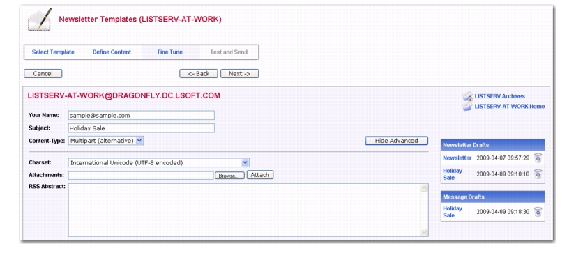 LISTSERV 16.0 gives you the ability to easily create, customize, and send unique newsletters.