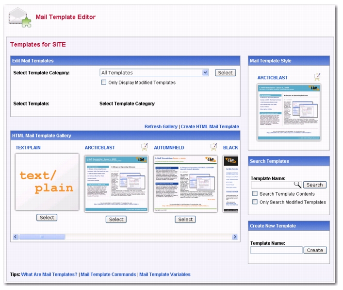 Note: For details on the the new HTML Mail Template Gallery, see Section 1.4.2 Using the HTML Mail Template Gallery.